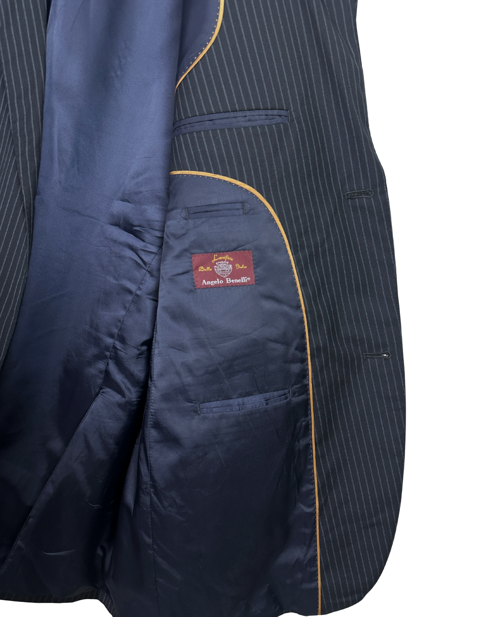 Angelo Benelli Pinstripe Wool Blend Blazer - Size 56