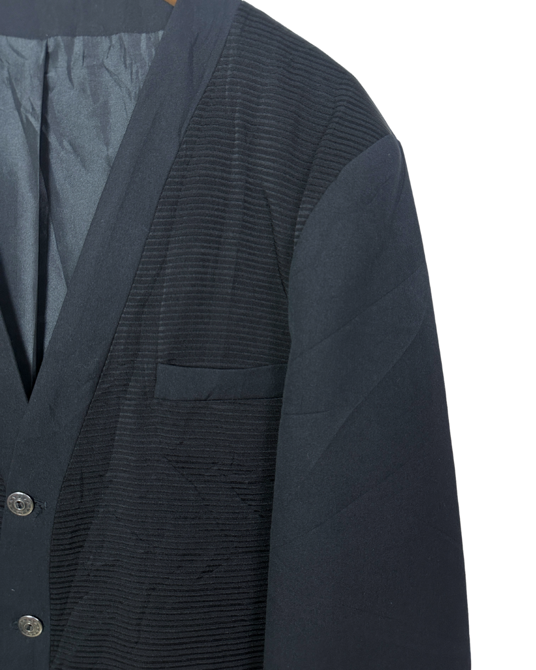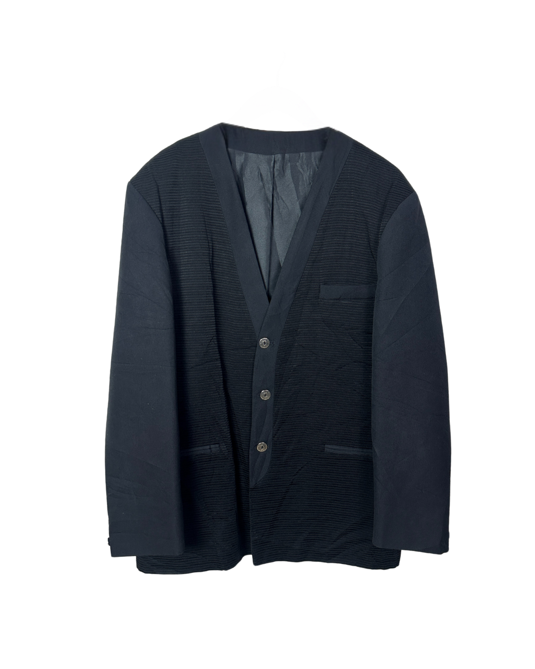 Vintage Babouche Black Ribbed Wool Blend Blazer 52