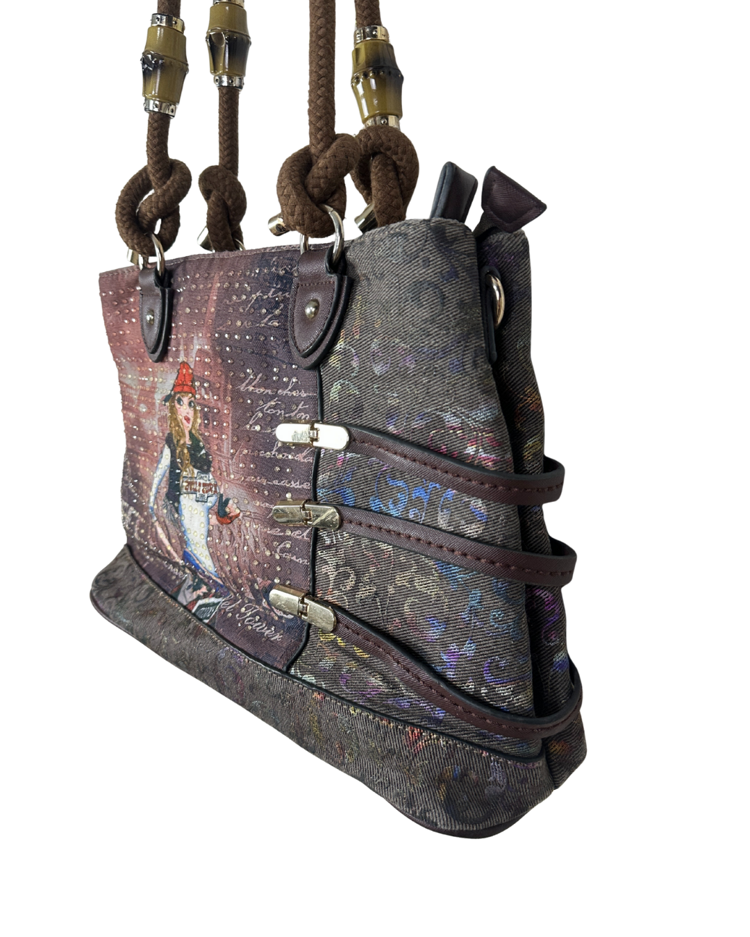 Vintage Y2K Illustrated Tote Bag with Rope Handles