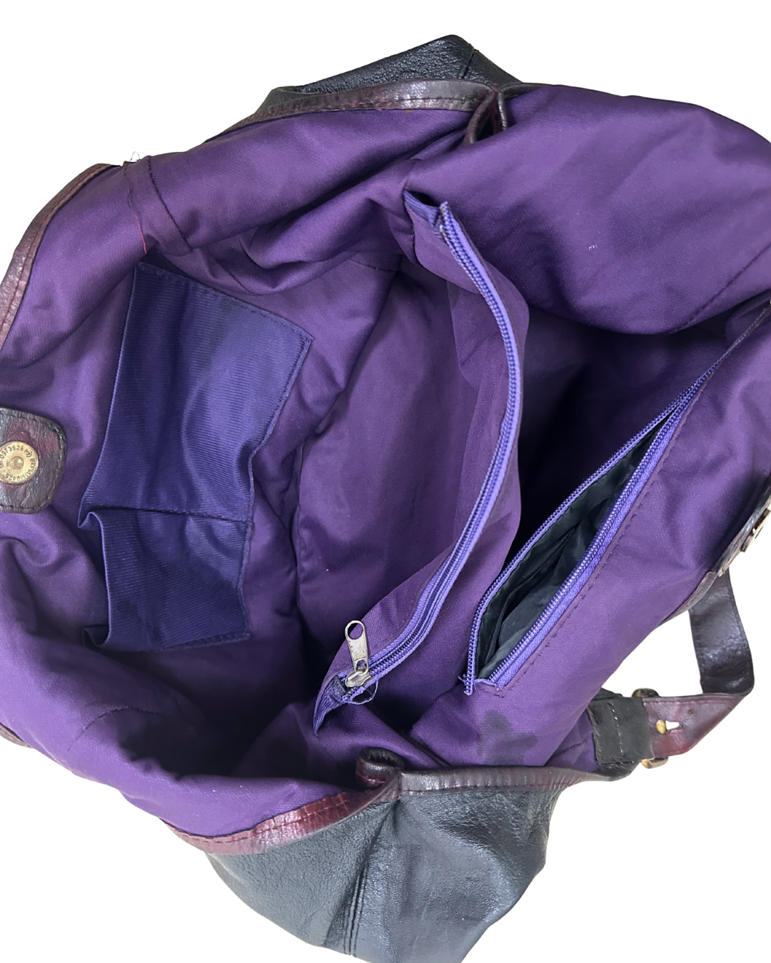 Vintage Genuine Leather Hobo Shoulder Bag with Burgundy Straps