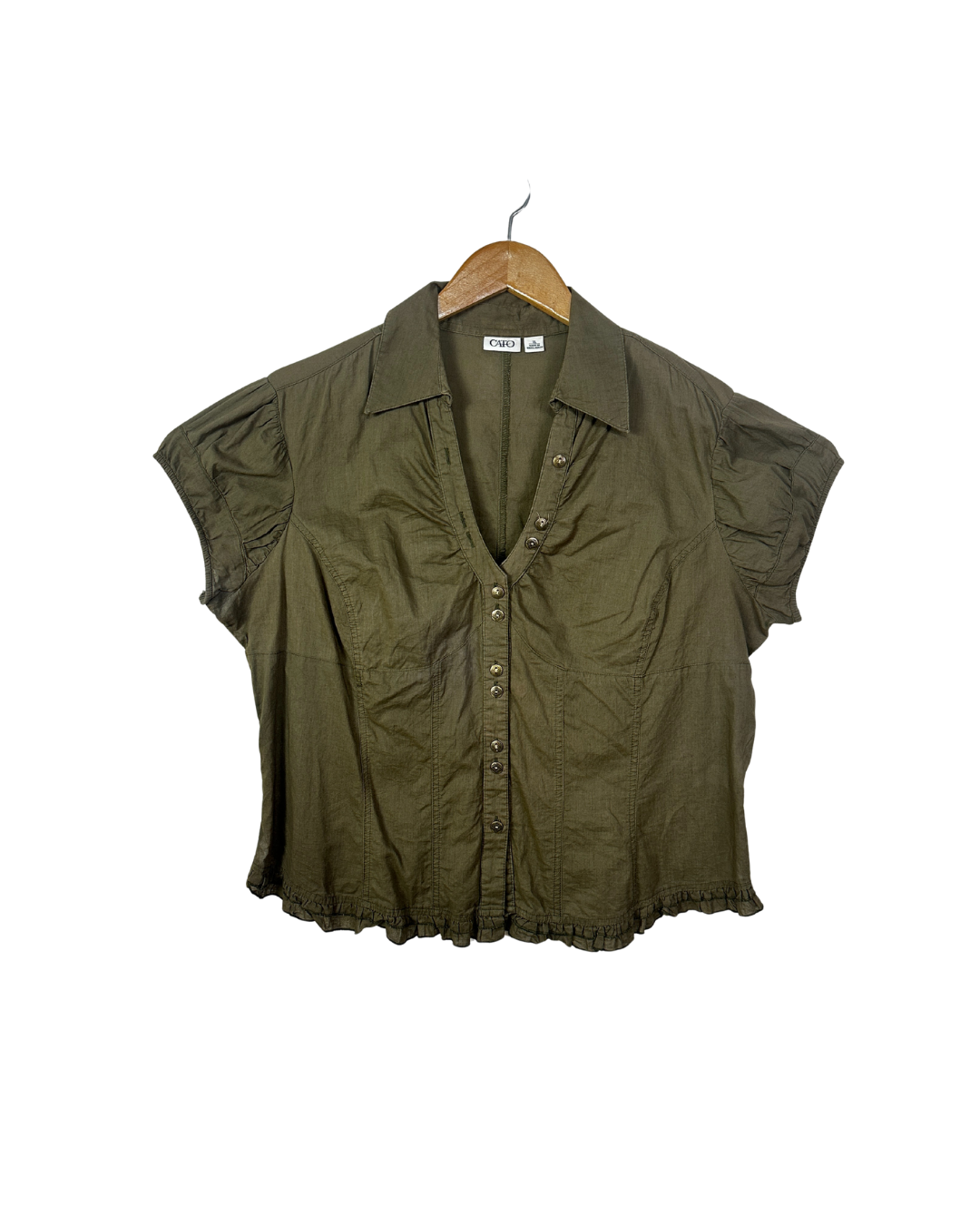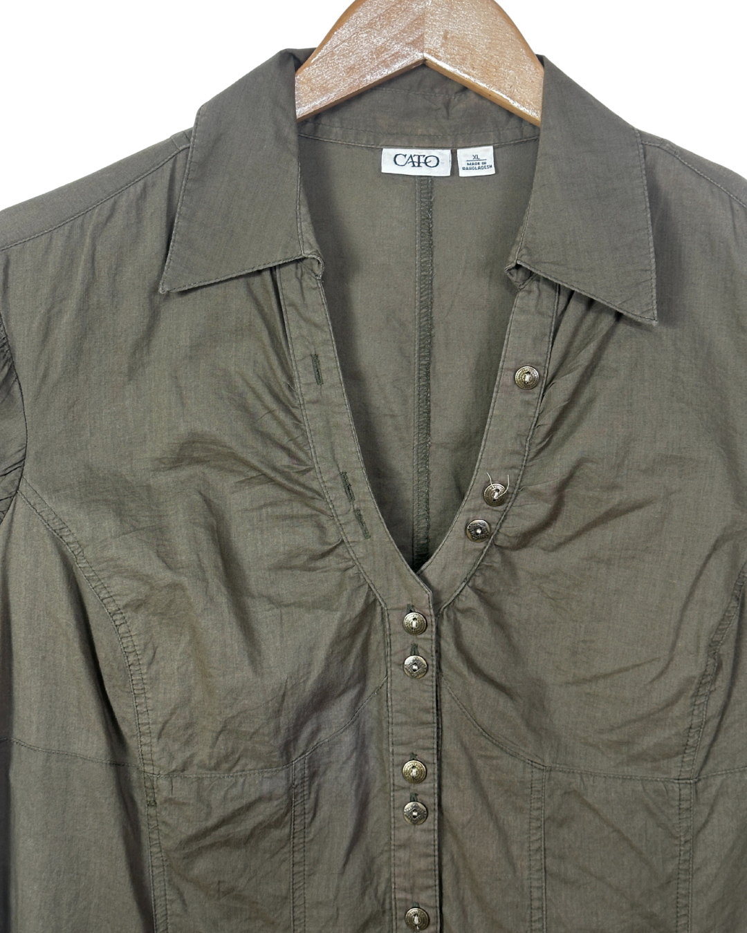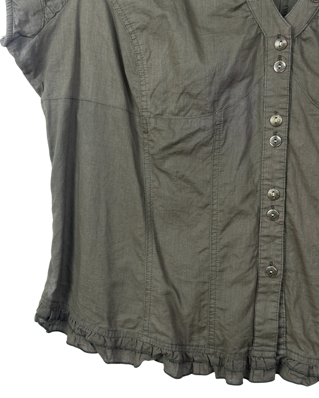 Cato Blouse with Ruched Hem and Decorative Metal Buttons - XL