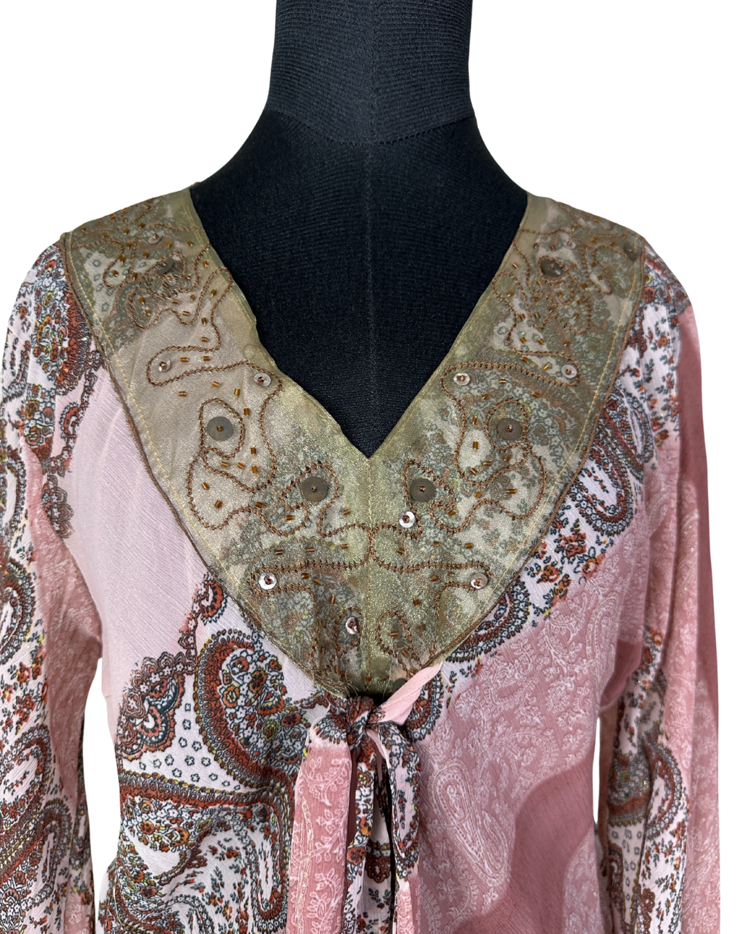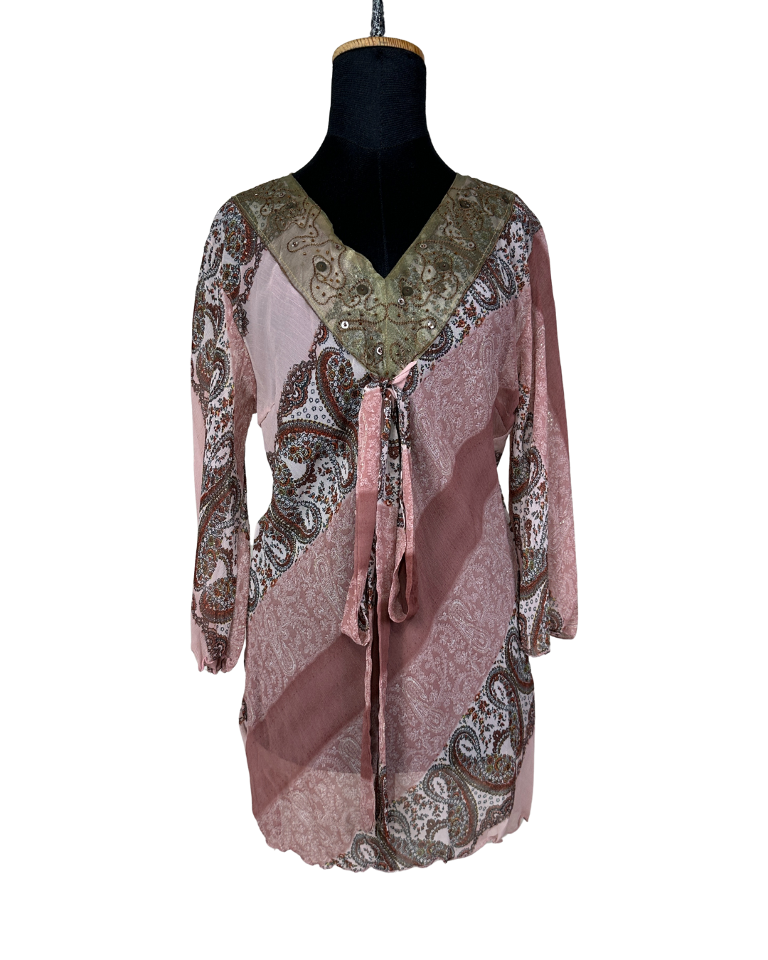 Boho Tunic Sequined Embroidered Blouse Large