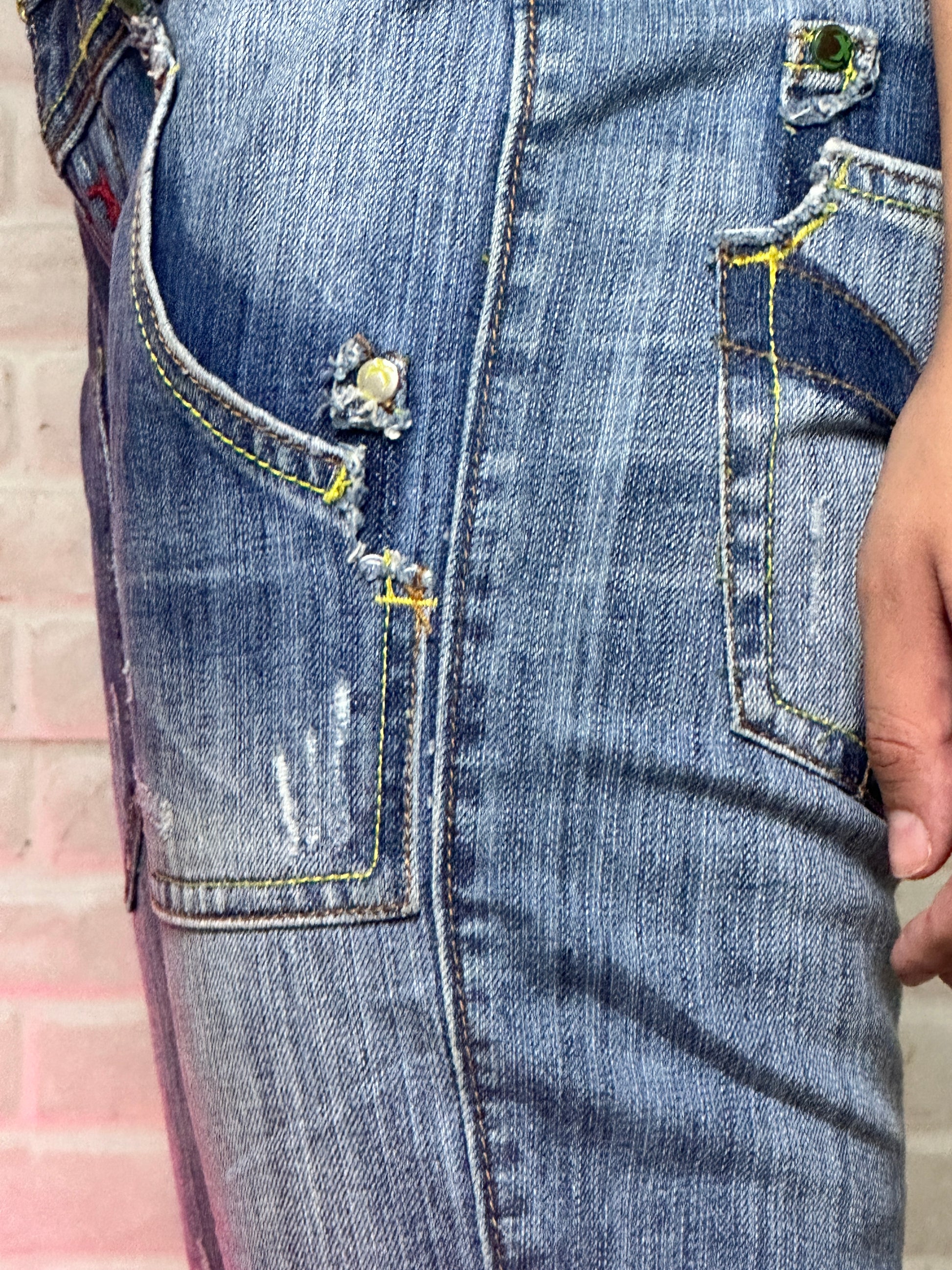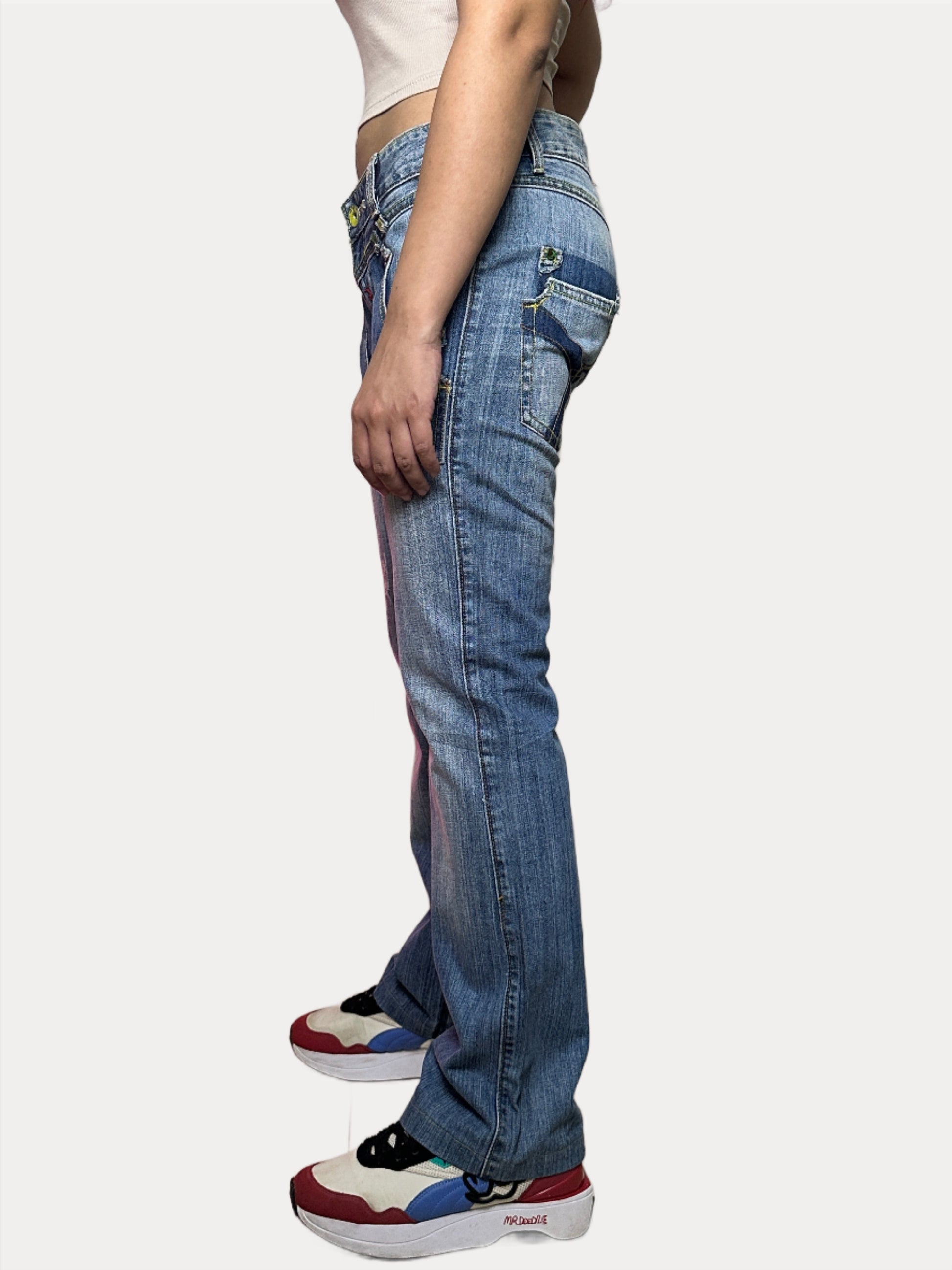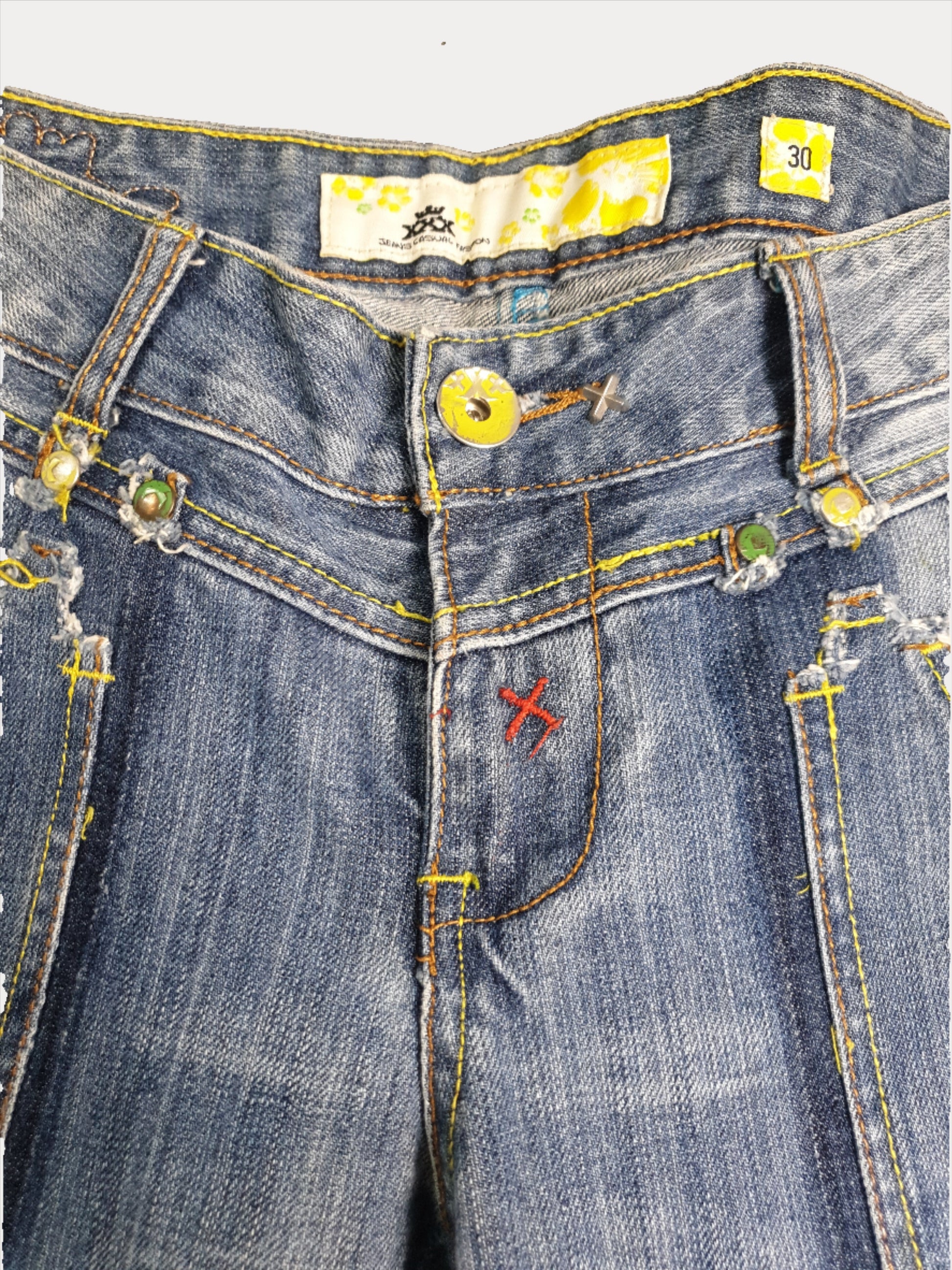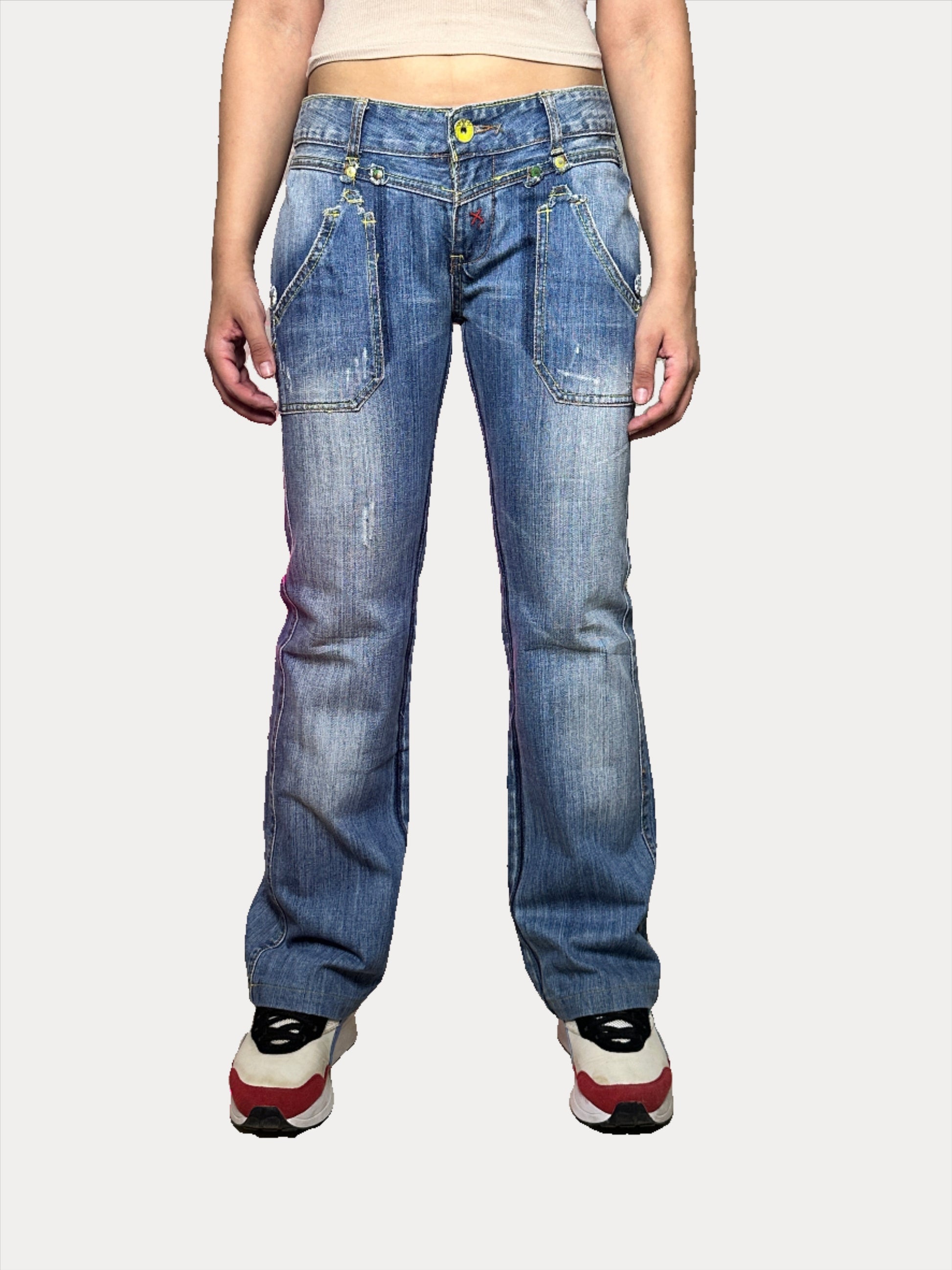 Vintage Low waist Women's Denim Jeans with Button Detailing