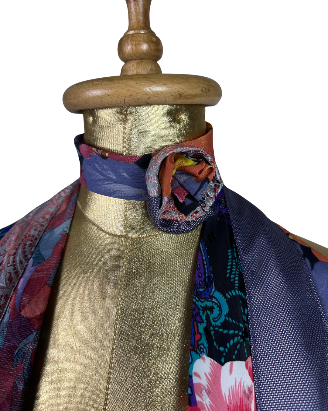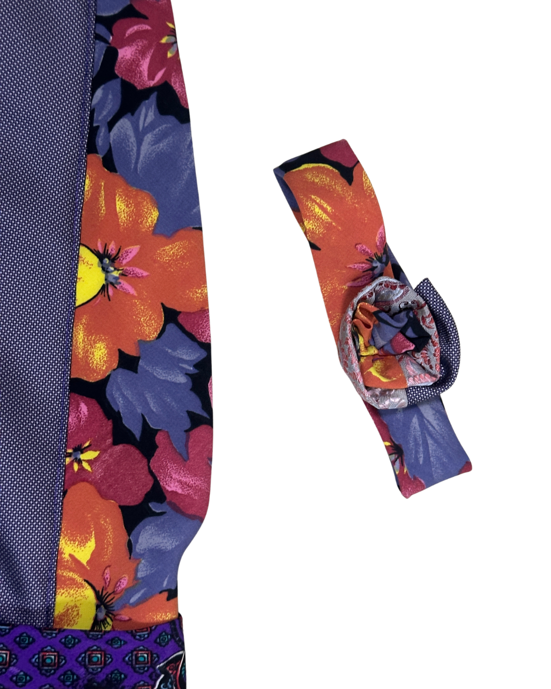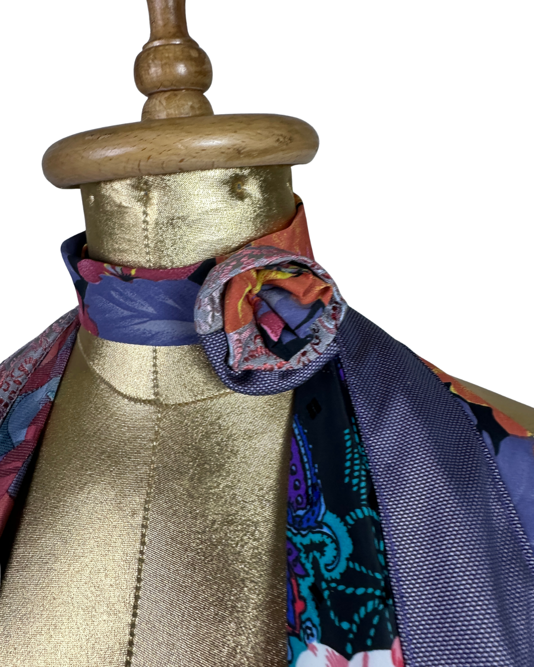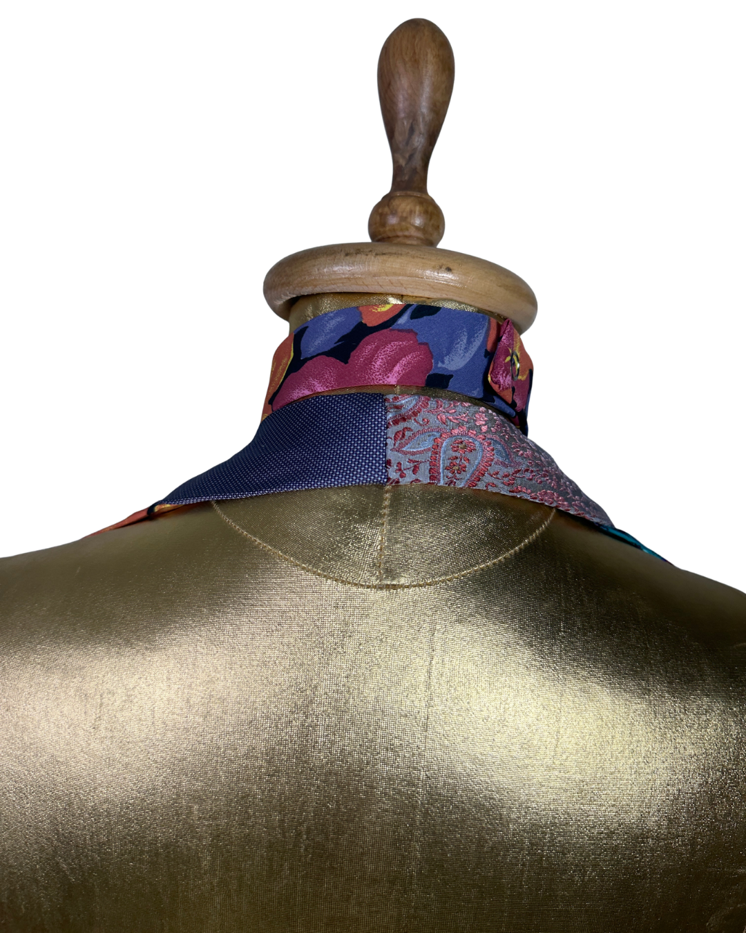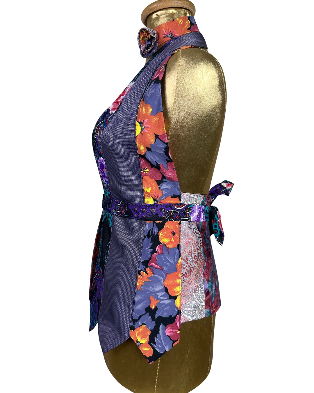 This one-of-a-kind halter vest top is part of our upcycled ReTied Collection and handmade from vintage neckties. Designed with a deep V-cut front and fitted panels. Comes with a matching choker featuring a handmade fabric flower detail. A back tie closure makes it adjustable and comfortable to wear.
