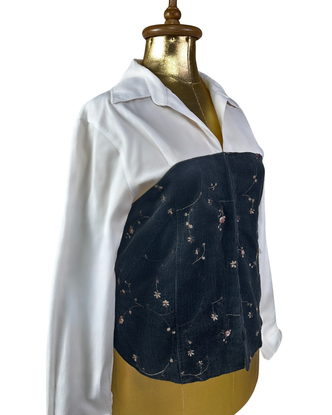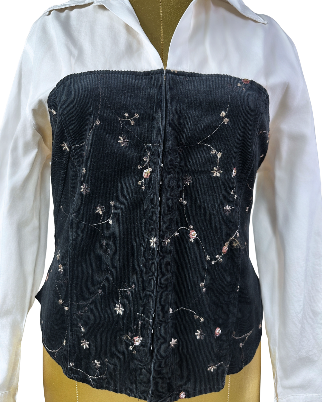 Canda Fitted Shirt w/ Velvet Bustier & Fish Hook Closure XL