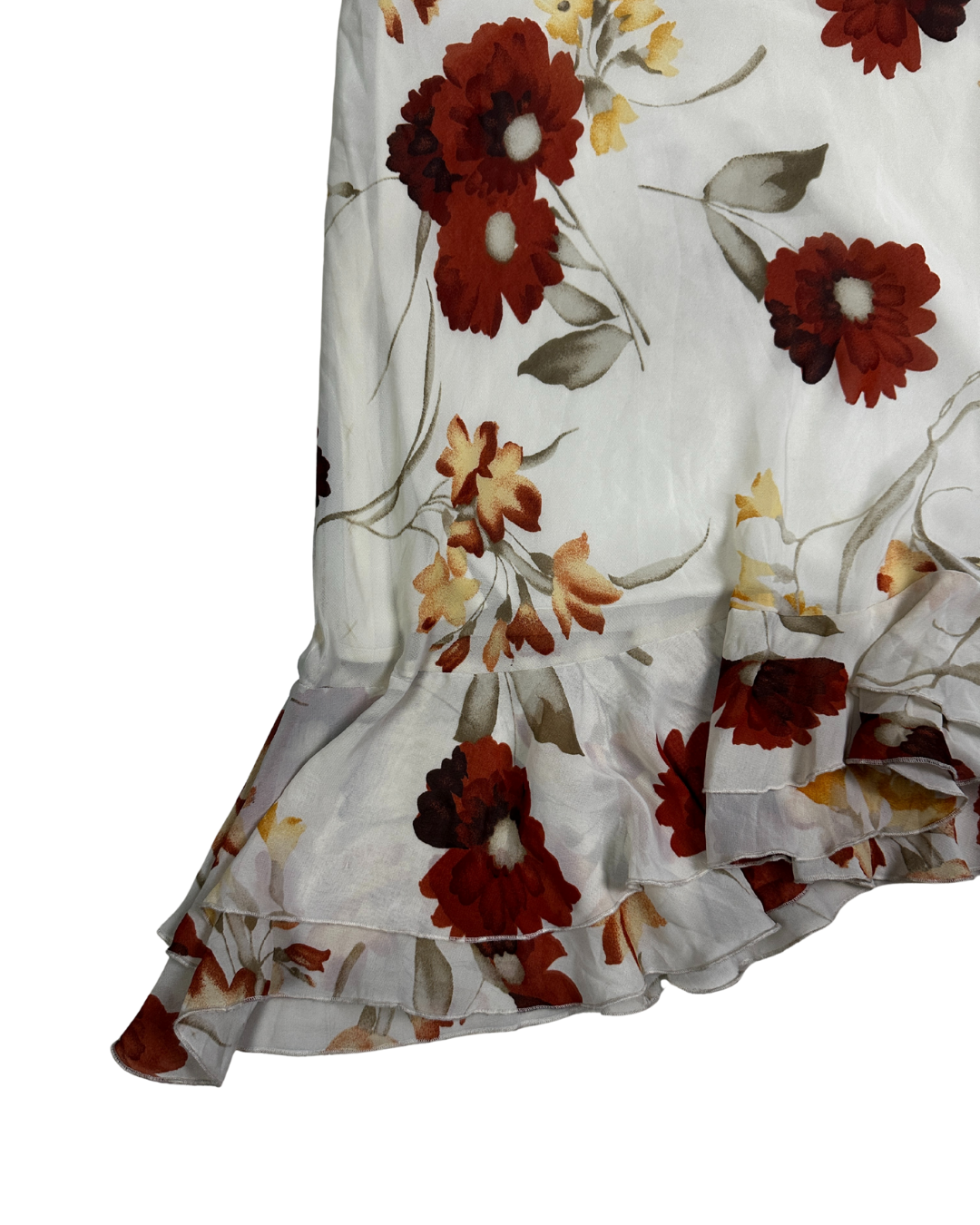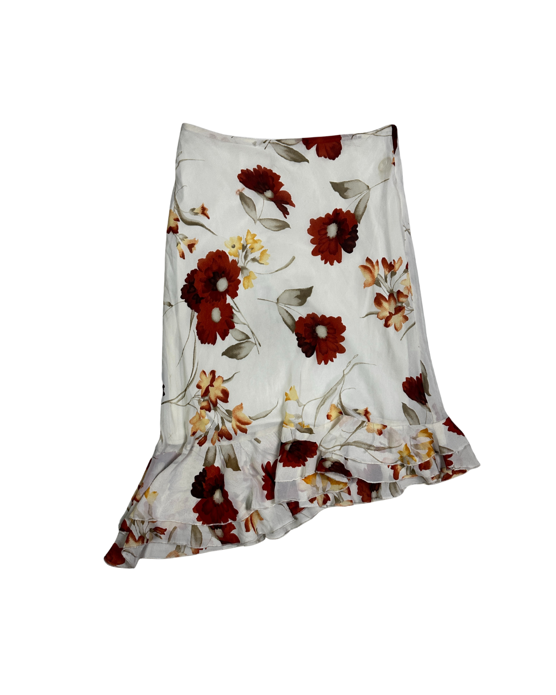 Floral Midi Skirt with Asymmetric Ruffle Hem - Small/ Medium