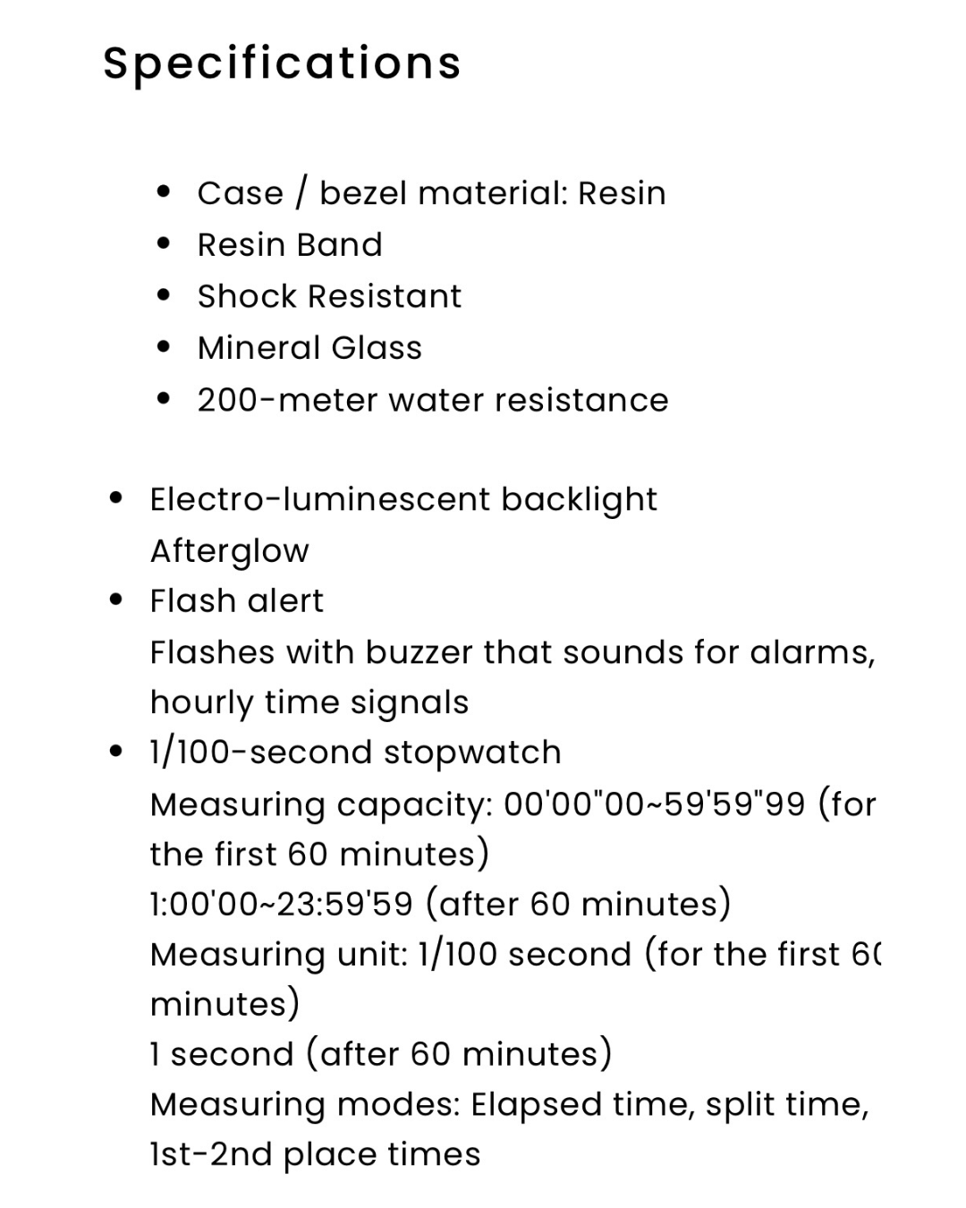 Measuring capacity: 00'00"00~59'59"99 (for the first 60 minutes); 1:00'00~23:59'59 (after 60 minutes).