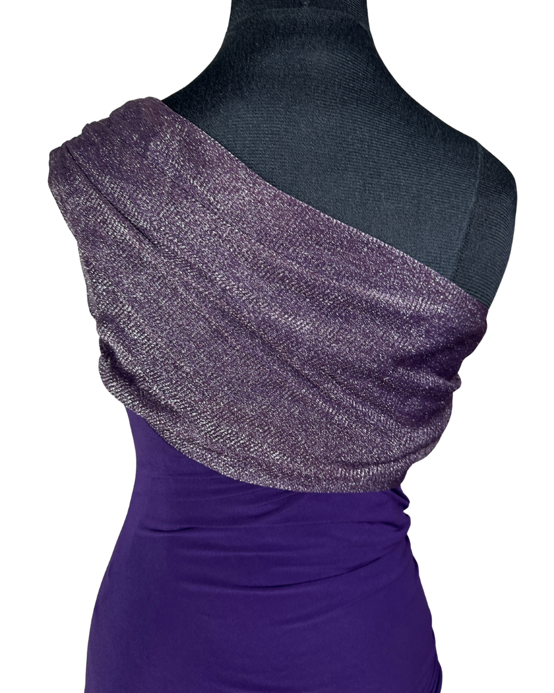 Jane Norman London One-Shoulder Ruched Dress with Metallic Drape