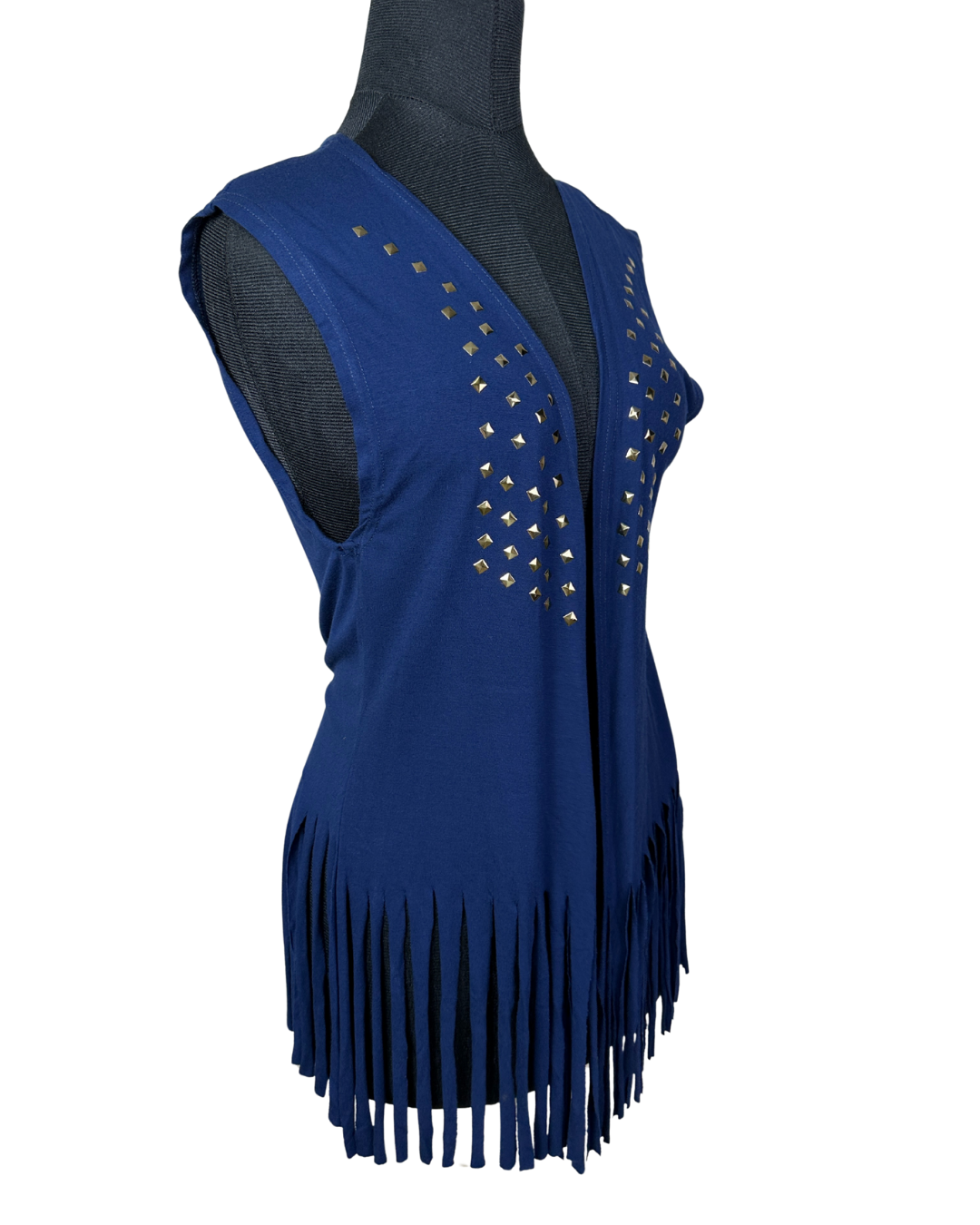 Navy Fringe Vest with Gold Studs