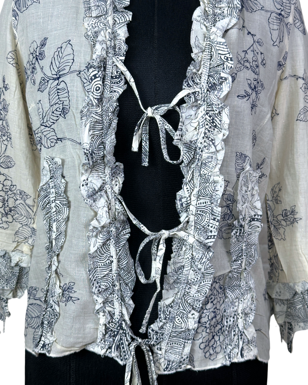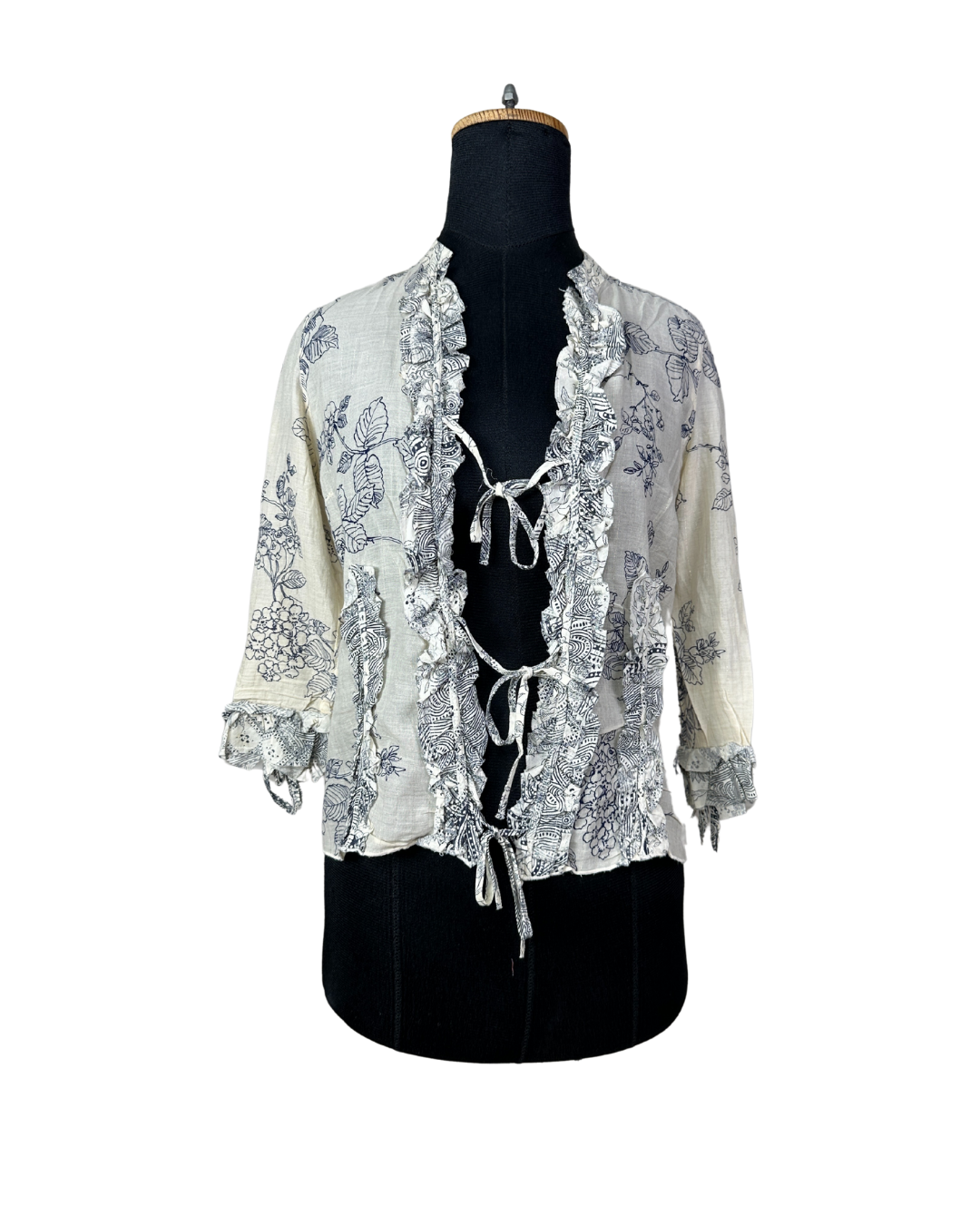 Principles Petite Floral Tie-Front Ruffle Blouse - Small