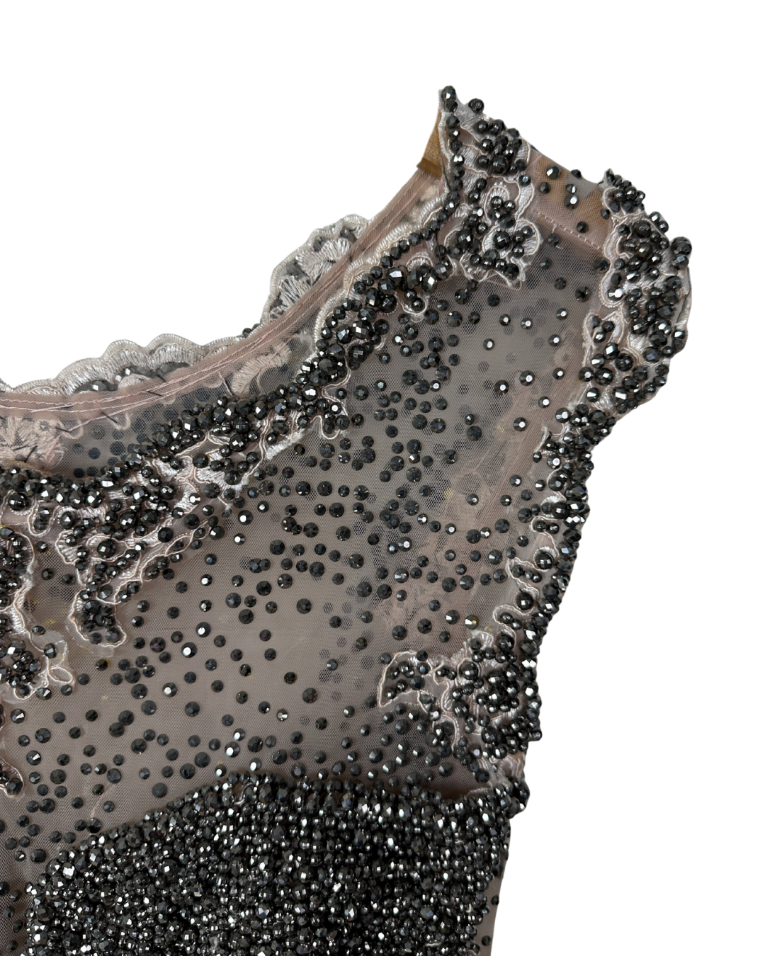 Pink Evening Gown with Sheer Beaded Bodice & Back