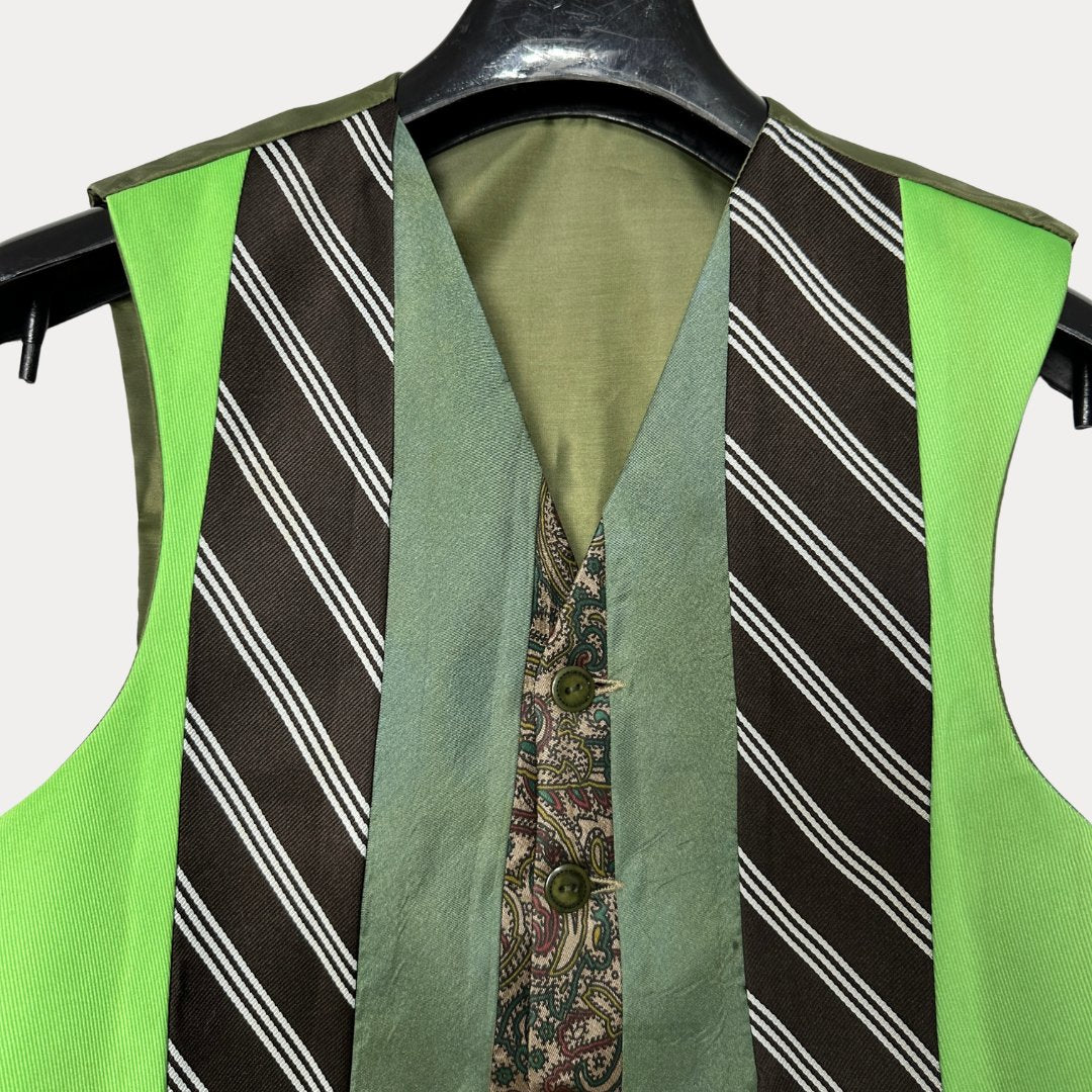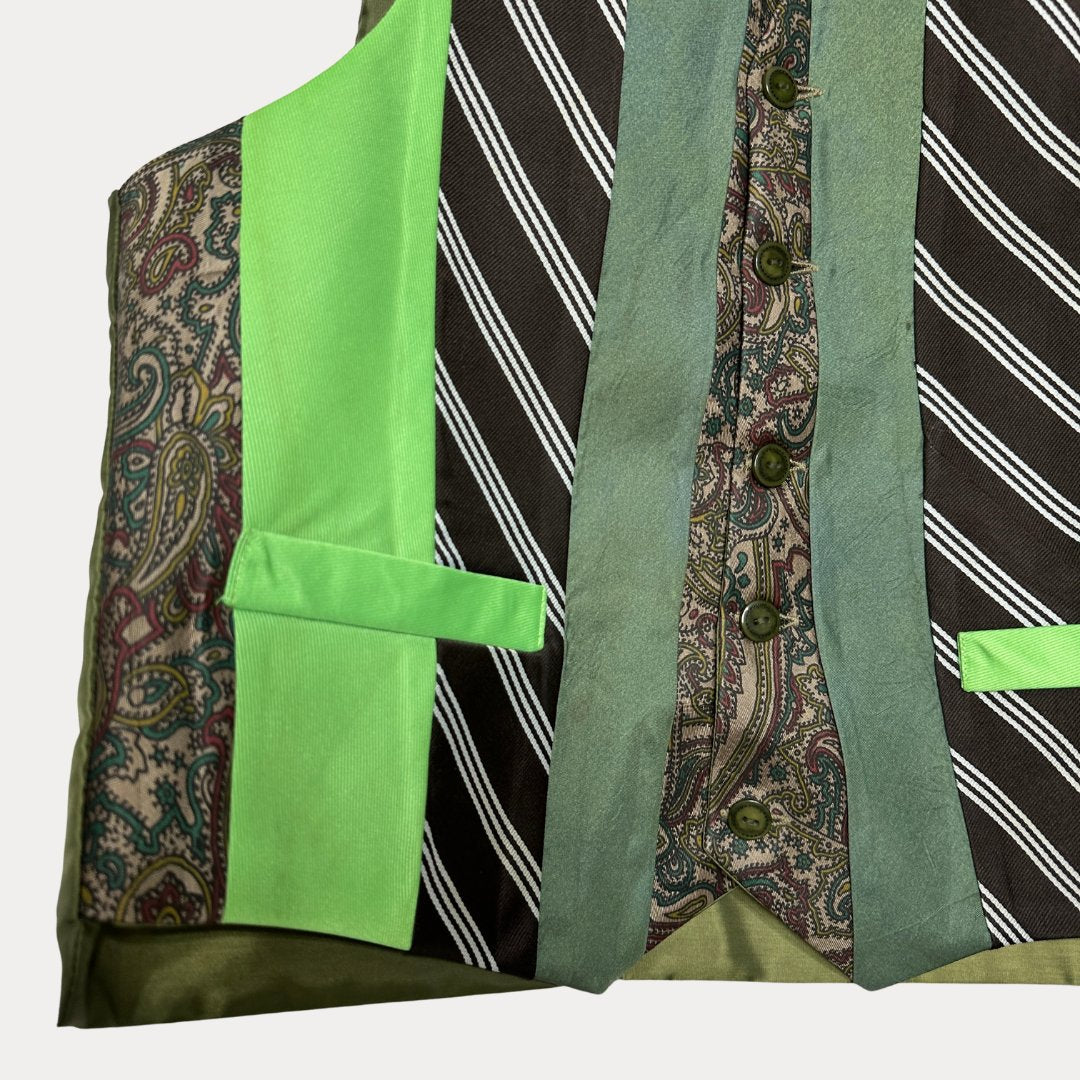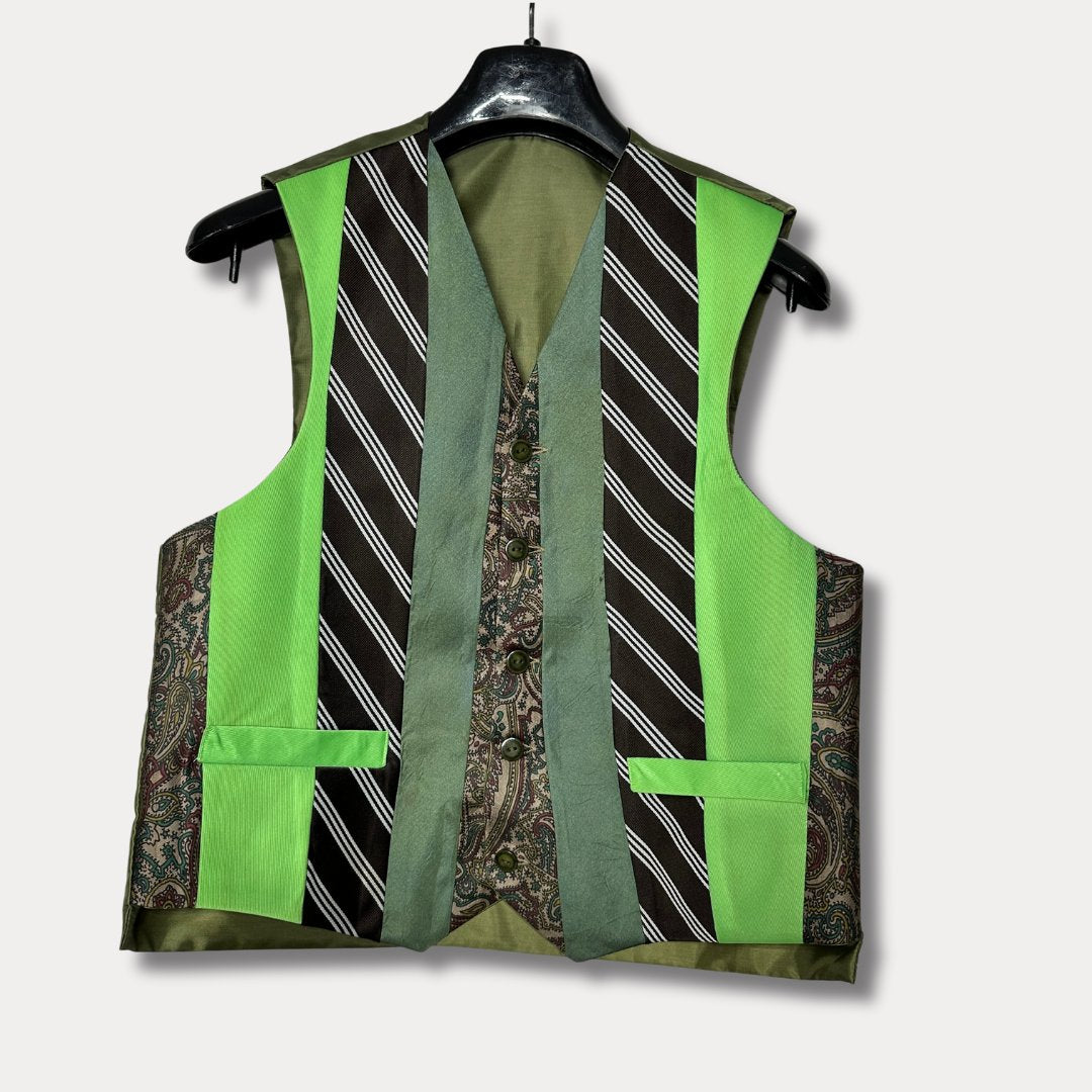 Funkify your fit with our ReTied Vest, where each piece is a unique, eco-chic twist on vintage neckties, upcycled into cool, wearable art.