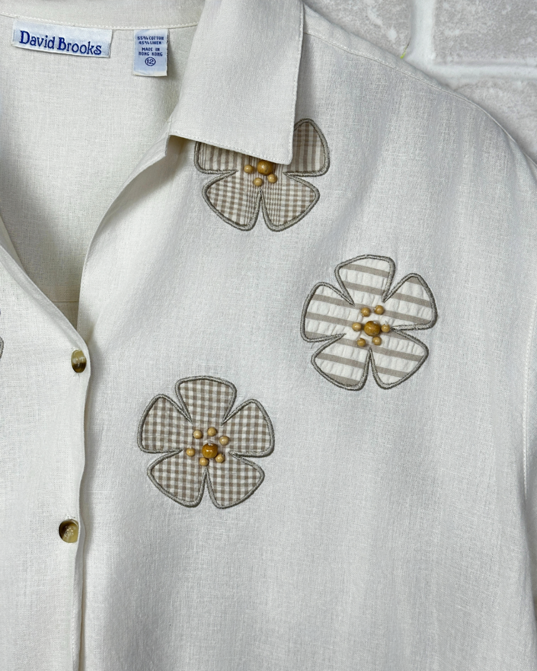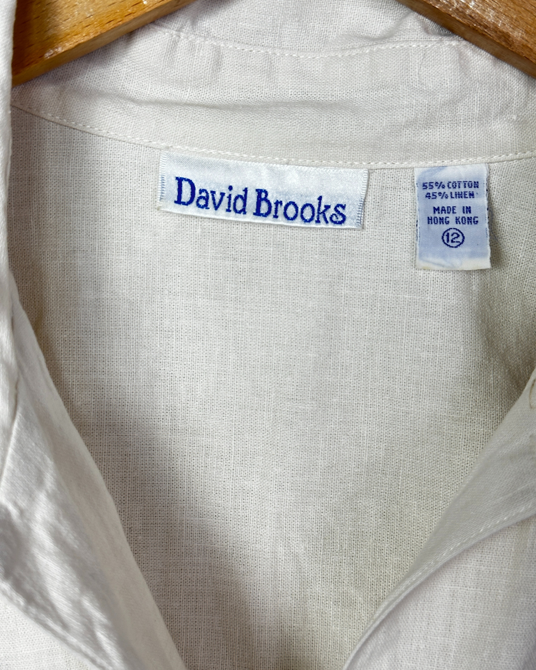 David Brooks Cotton-Linen Blend Embroidered Shirt - Large