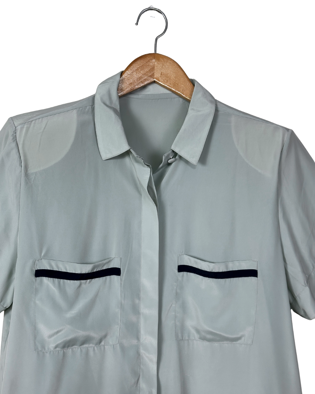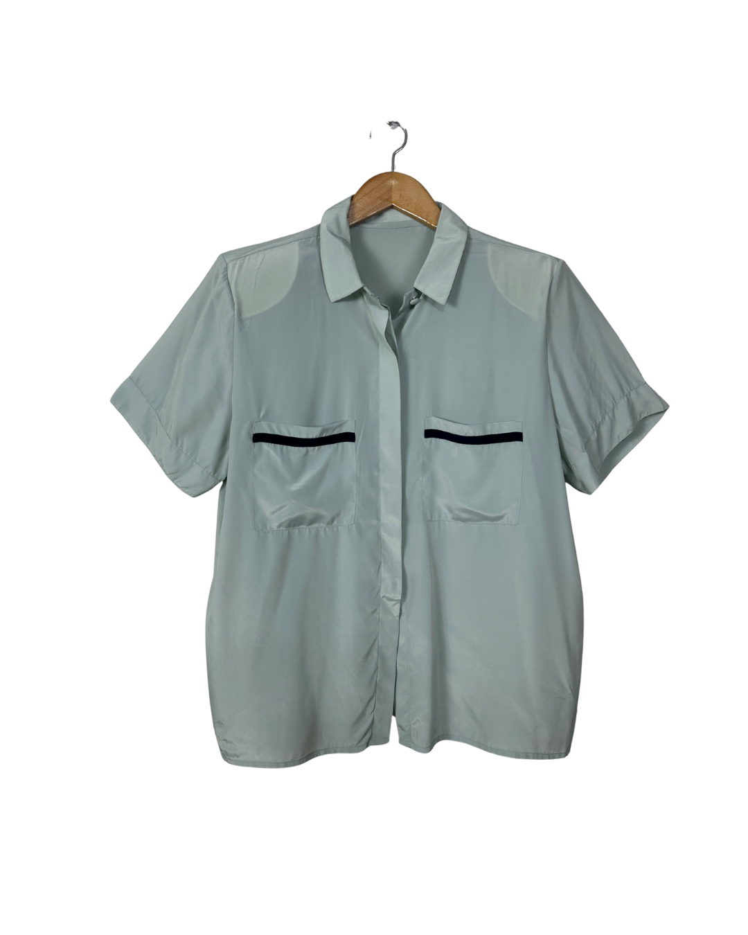 Vintage Sage Green Pure Silk Shirt - Women's Medium