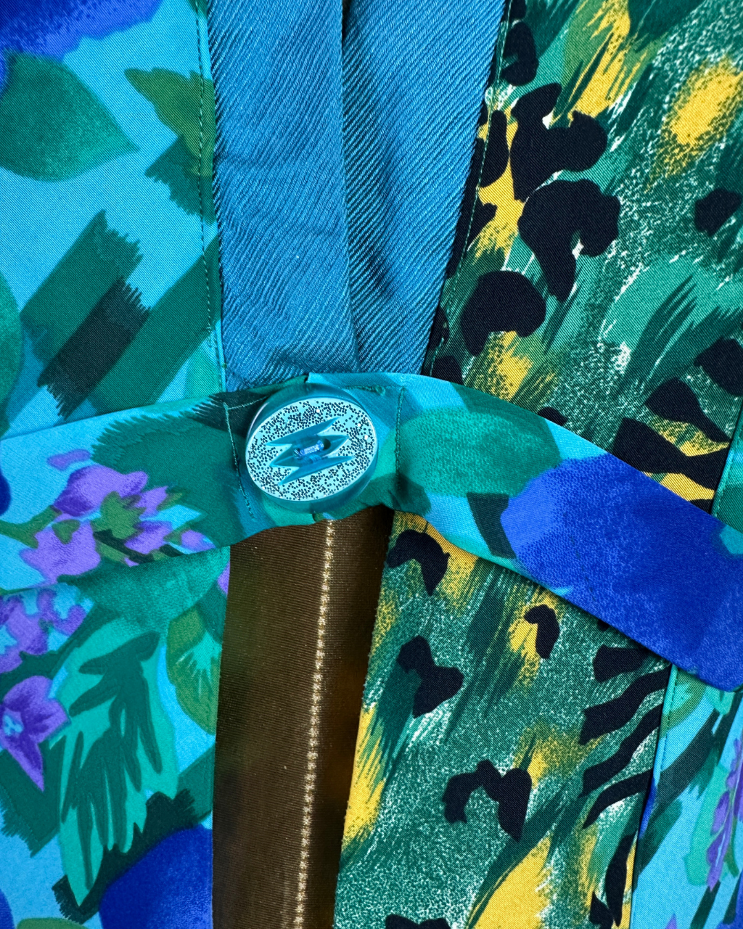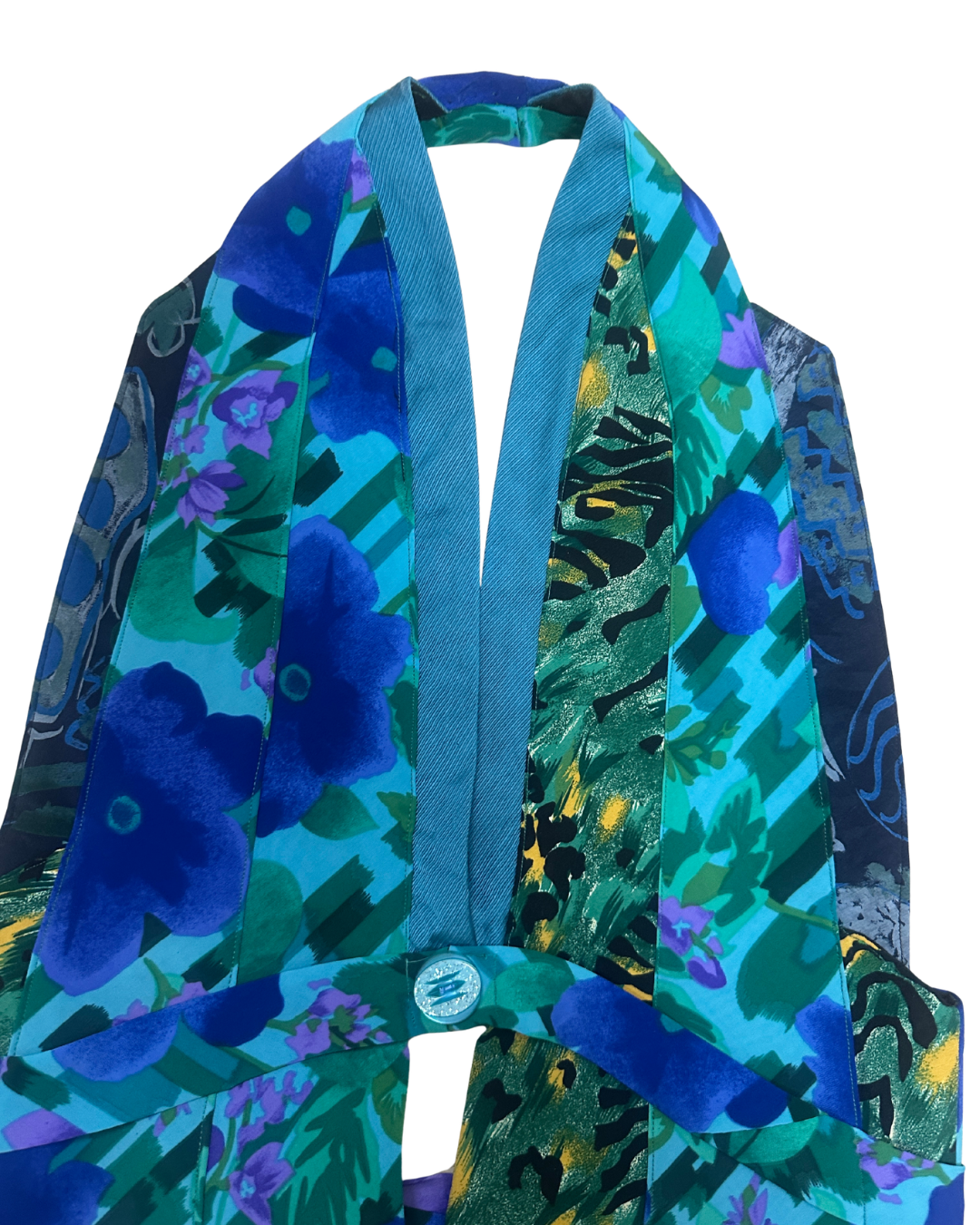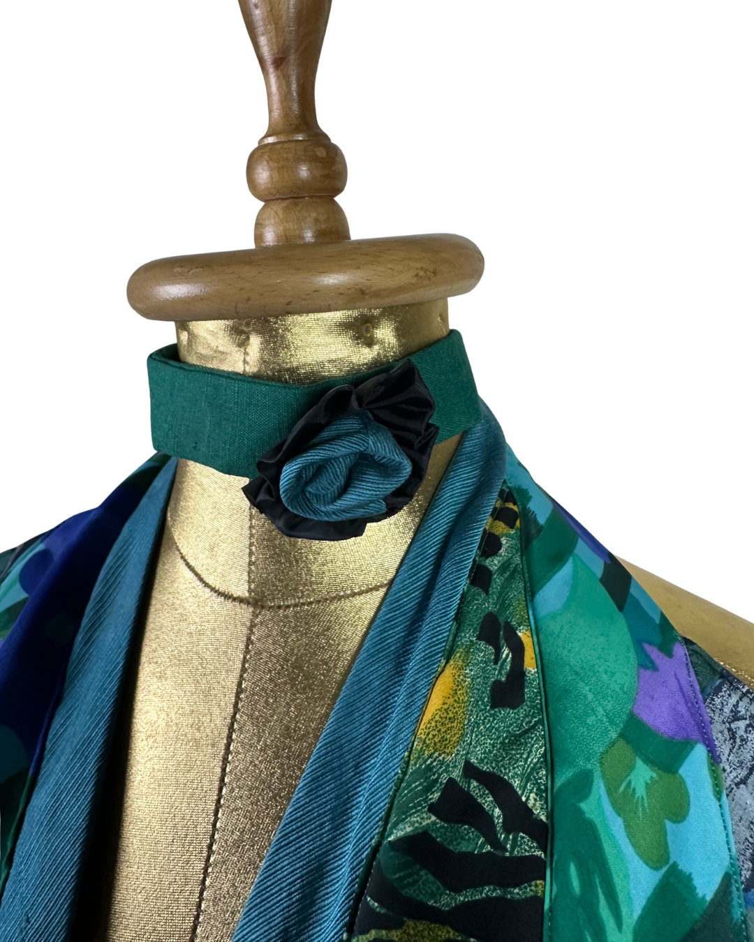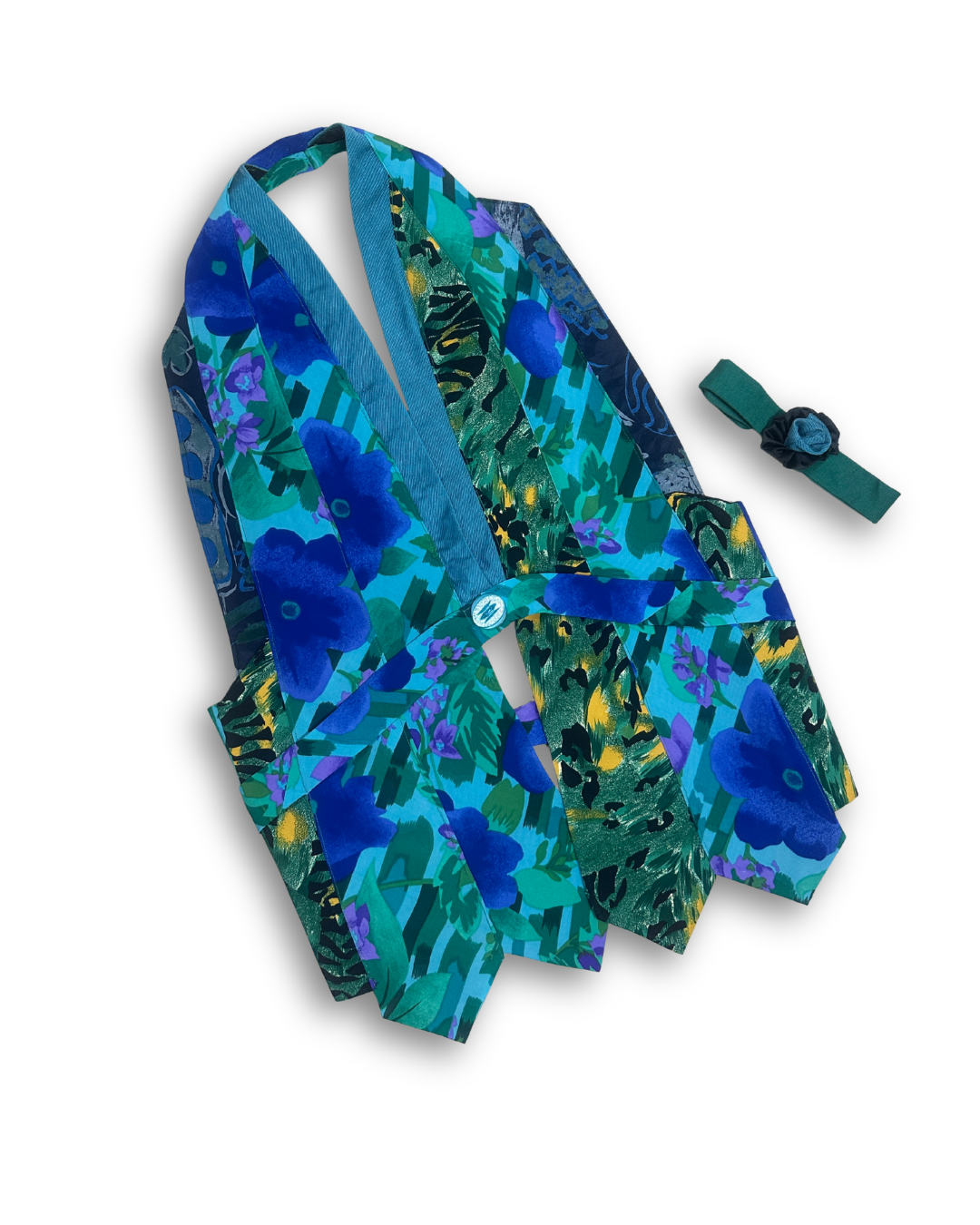 This one-of-a-kind halter vest top is part of our upcycled ReTied Collection and handmade from vintage neckties. Designed with a deep V-cut front and fitted panels, it’s secured at the waist with a decorative button. Comes with a matching choker featuring a handmade fabric flower detail. A back tie closure makes it adjustable and comfortable to wear.