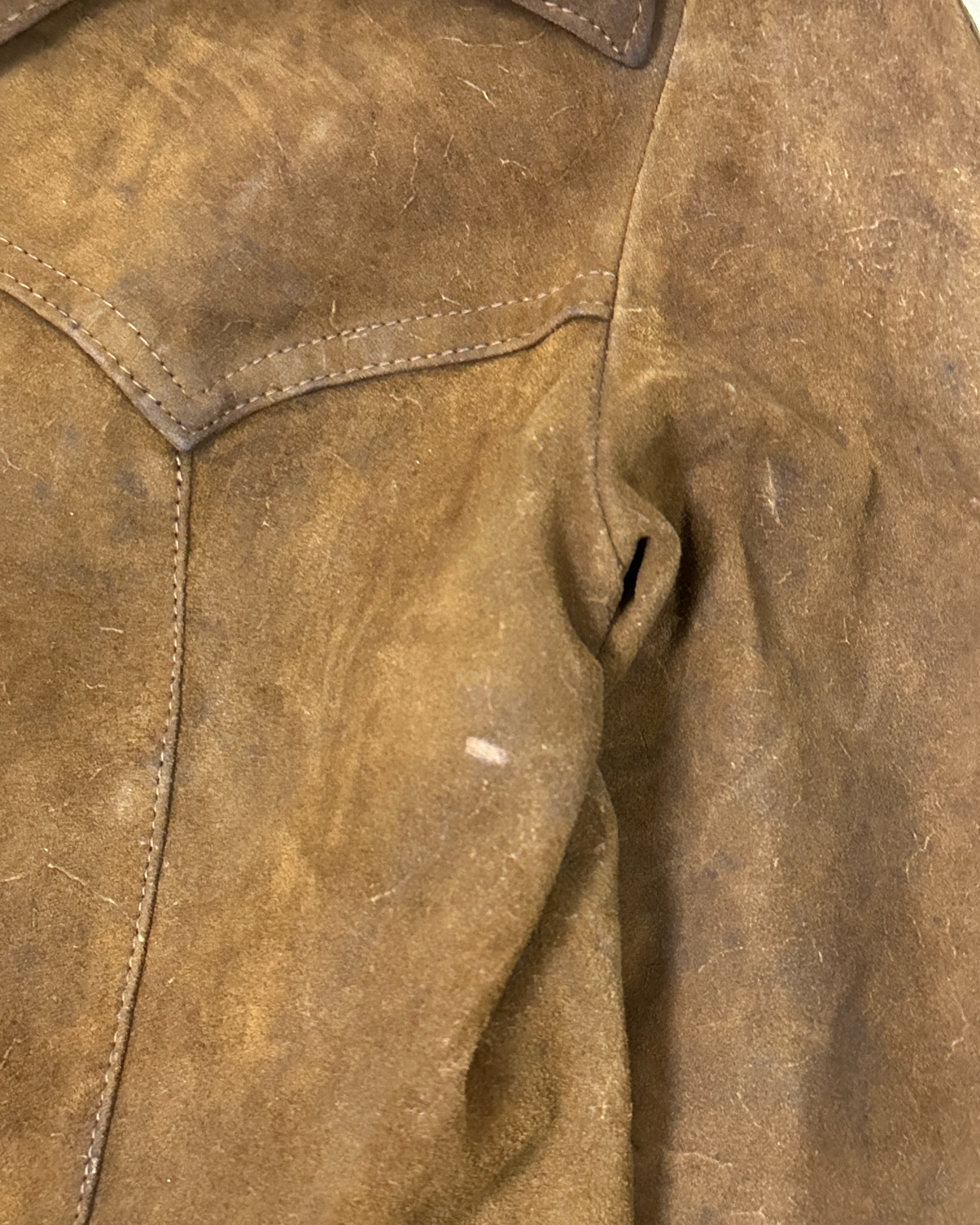 A true vintage 1970s suede coat with a heavy western/boho influence.