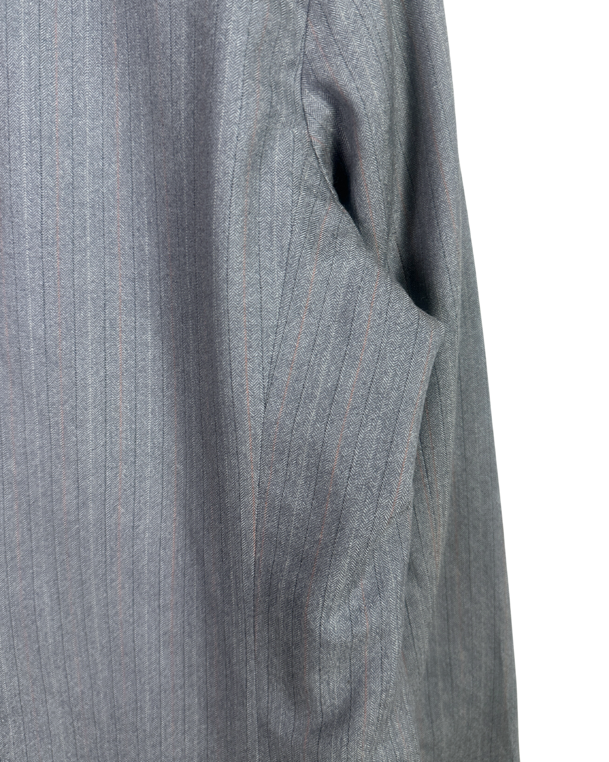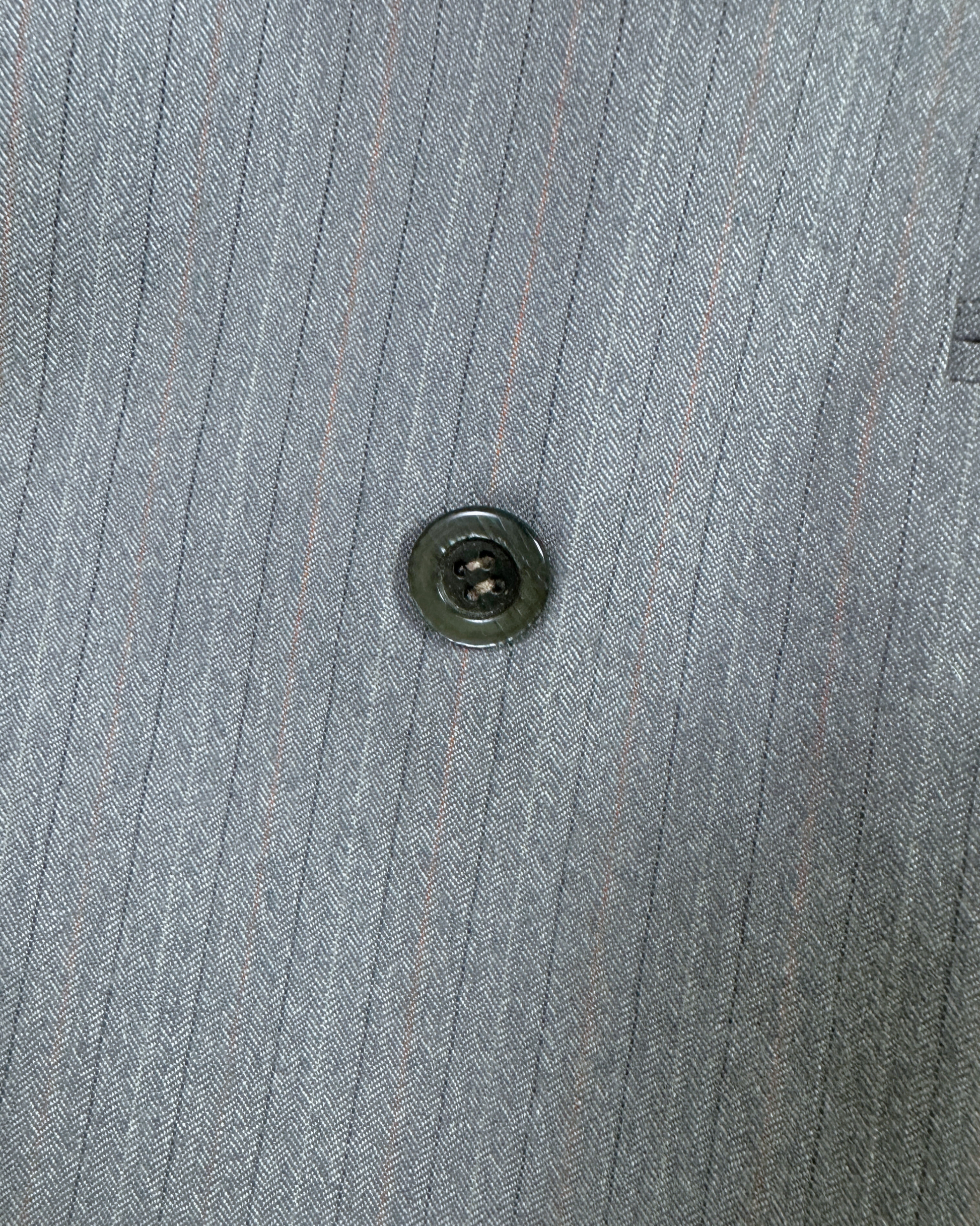 Pattern: Grey herringbone weave with subtle rust pinstripes.