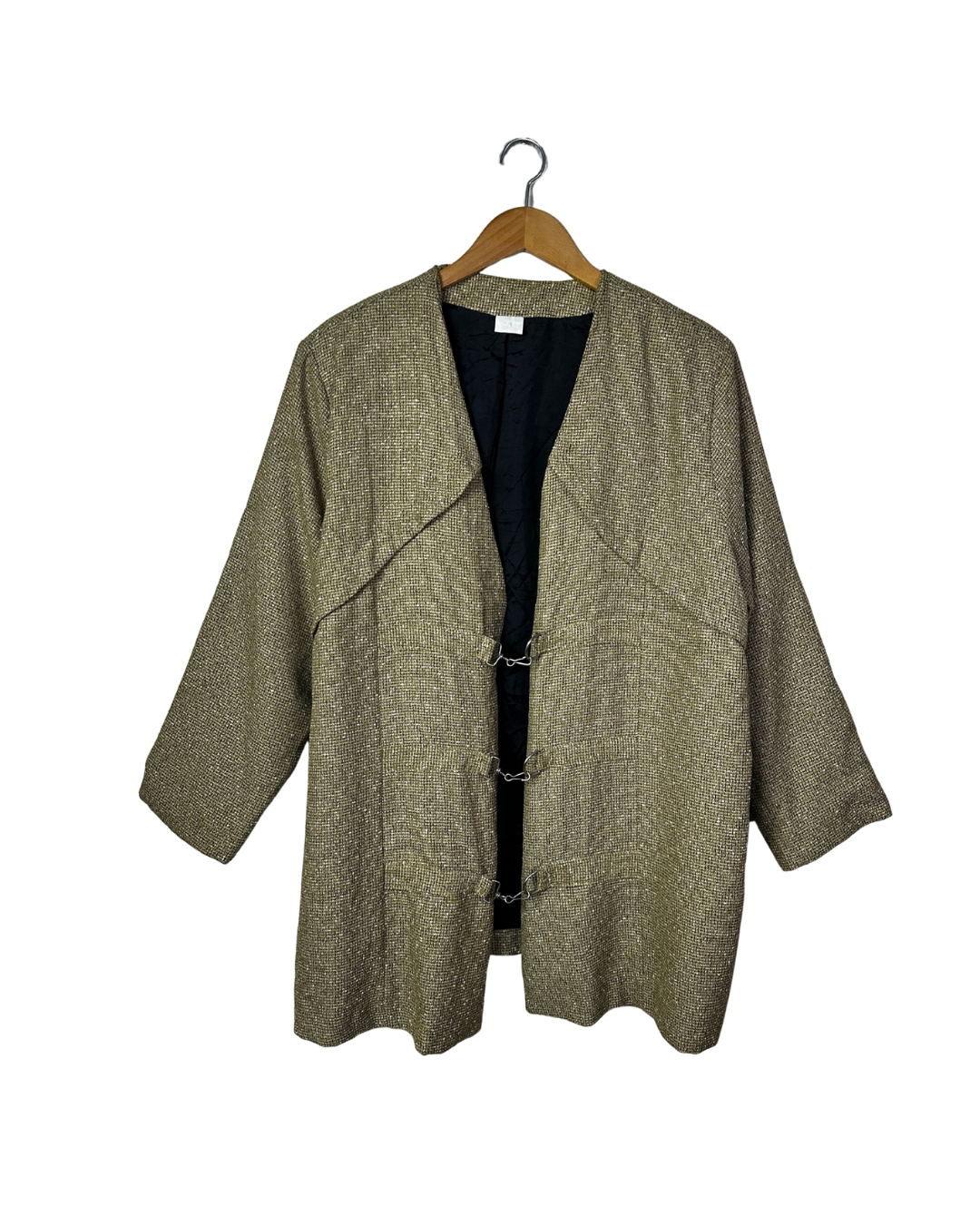 Vintage Metallic Woven Women's Evening Jacket – Hook Closure