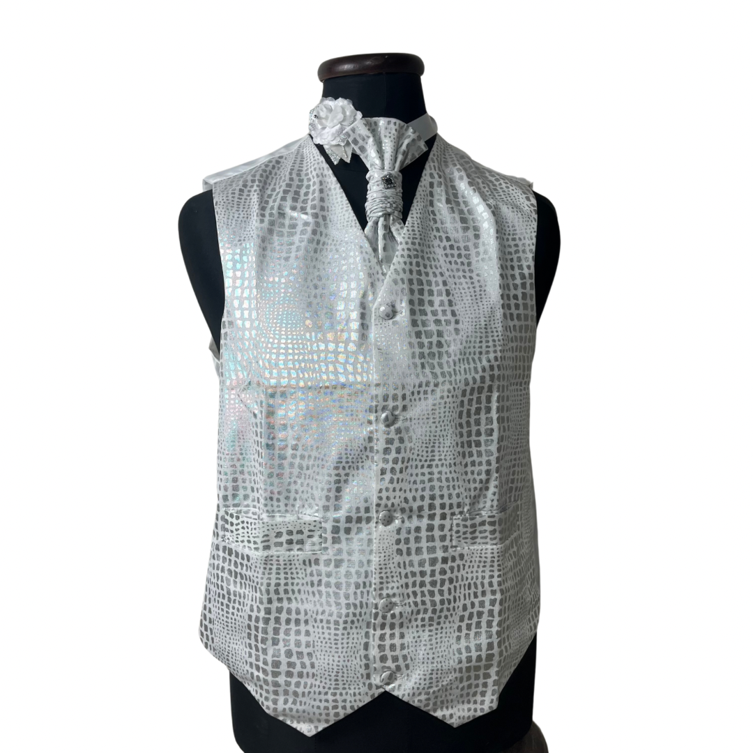 Crocodile Pattern Vest, Slip-on Necktie & Boutonnière Set Large