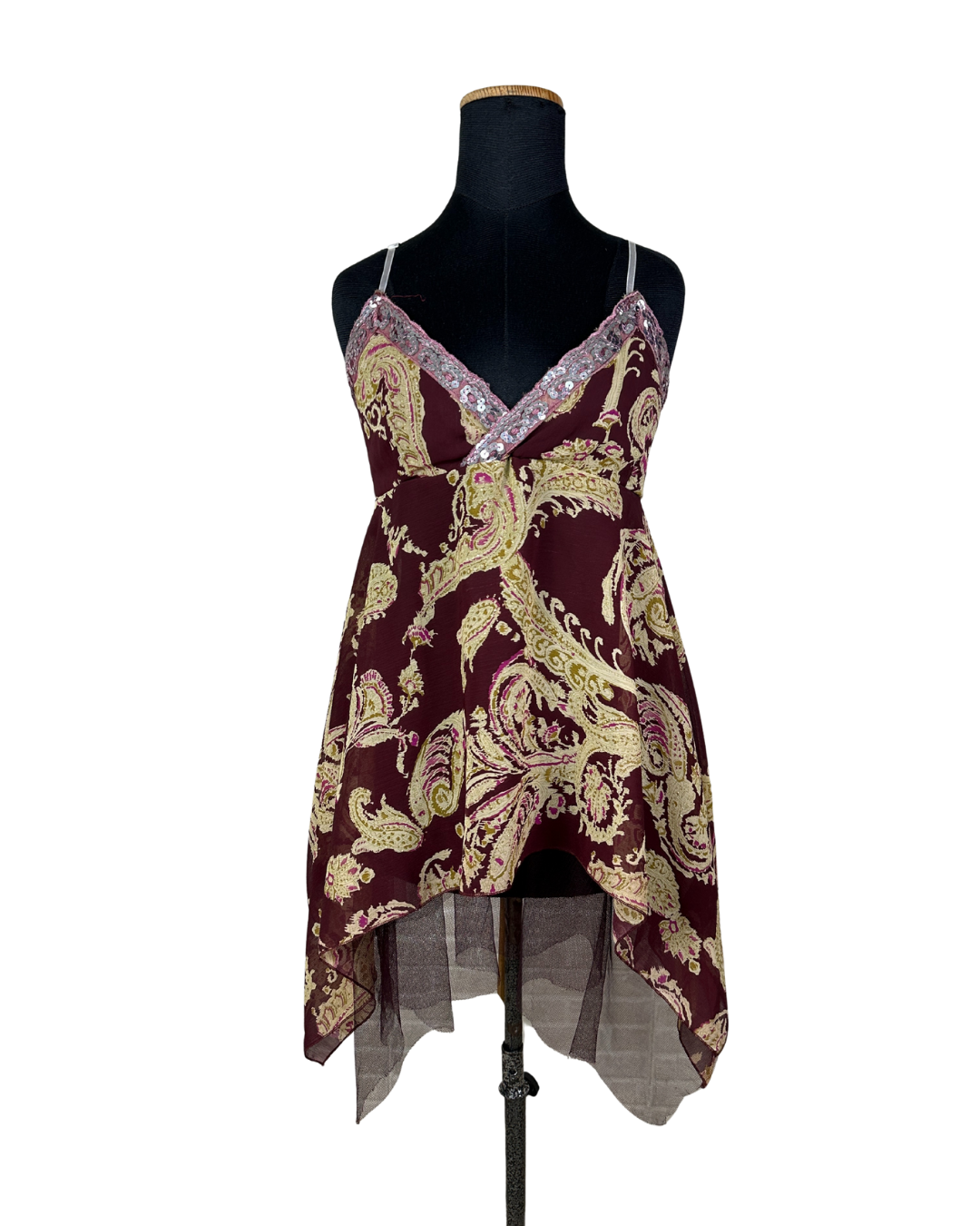 Y2K Assymetrical Hem Sequin Detail Cami Top