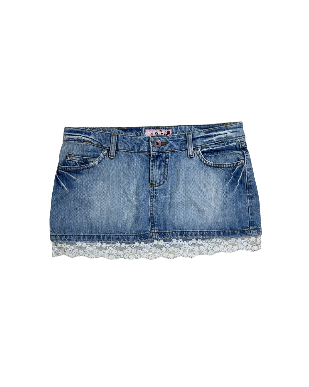 Y2K D-Side Cutecore Denim Mini Skirt w/ Lace - W28
